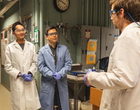 D'Arcy (center) in his lab with collaborators.